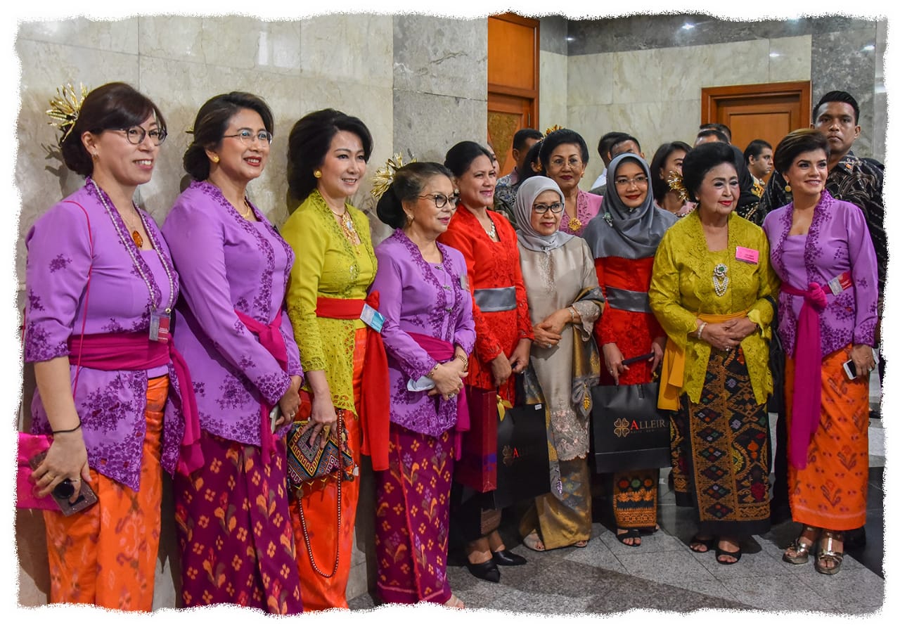 Peresmian Bazaar 2019 WIC – Woman International Club (WIC) dihadiri Ny. Iriana, Ny. Yusuf Kalla, Ny. Wuri Ma’ruf Amin. Salah satu Panitia acara tersebut yaitu Ny. Sri Ramadhiyati Harmoko.