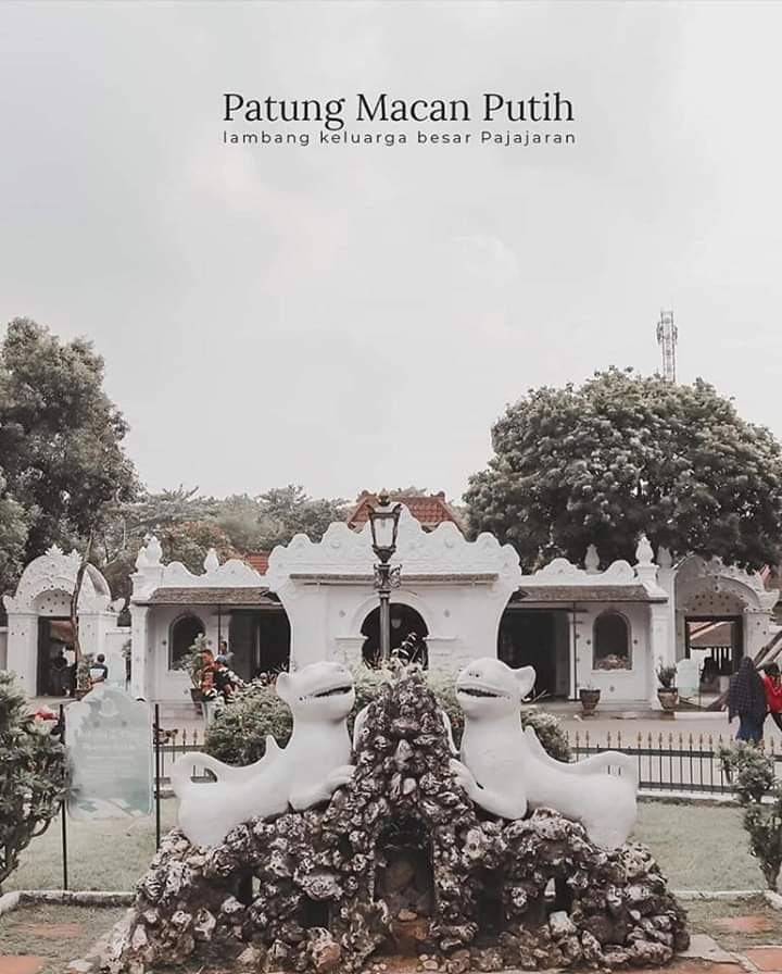 Patung harimau putih sebagai lambang keluarga besar Pajajaran (keturunan Prabu Jaya Dewata (Silih Wangi) di taman bundaran Dewandaru pada area utama keraton Kasepuhan.