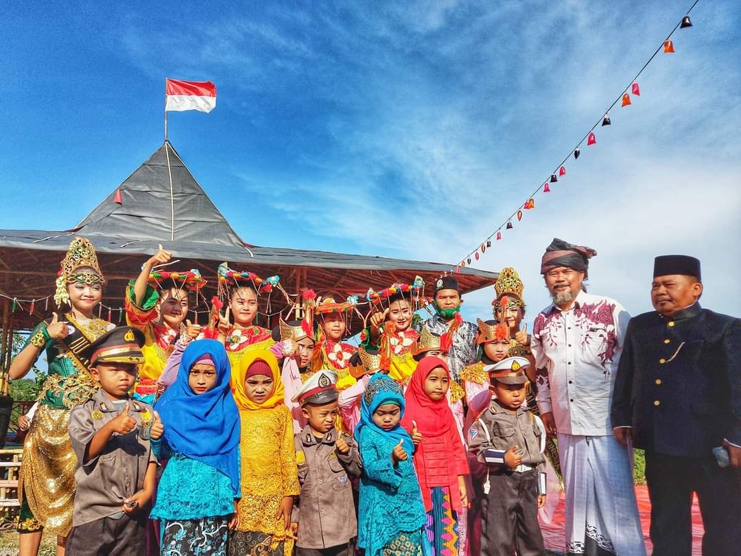 WBN, KAB. Bekasi– Bertempat di Saung Bambu Pinggir Kali Piket. Sejumlah laki-laki berpakaian pangsi, bersongkok hitam, berselendangkan kain. Tampak asyik bercengkrama. Sejuknya angin pinggir Kali Piket, Desa Sukatenang Kecamatan Sukawangi- Bekasi, menambah suasana nyaman di pedesaan, Tepatnya di lingkungan Sekolah Alam Prasasti. Sabtu (15/8)