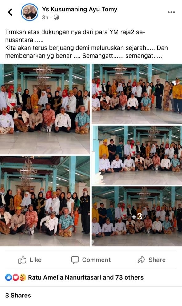 warisanbudayanusantara.com | Beredar foto Sreenshoot dalam akun Facebook atas nama Ys Kusumaning ayu tomy