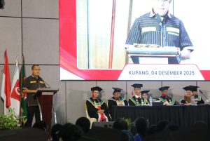 “Kalian para wisudawan harus bisa memaksimalkan potensi yang ada di setiap pelosok desa di NTT. Kalian harus bisa jadi motor penggerak kemandirian ekonomi desa di NTT. Implementasikan ilmu yang kalian miliki untuk menggali berbagai potensi yang ada di desa. Potensi yang ada harus juga dikembangkan dengan baik, dihilirisasi agar mempunyai nilai ekonomi yang tinggi pula,” pinta Gubernur Melki Laka Lena.